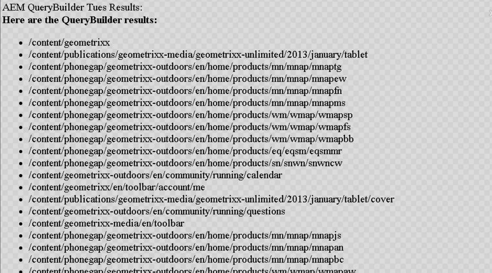 Could you please explain with a small example how to use Query Builder API and display the results using sightly.