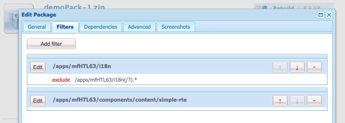 Did you try with another exclude filter, you can add this in directly to the pakage in package manager