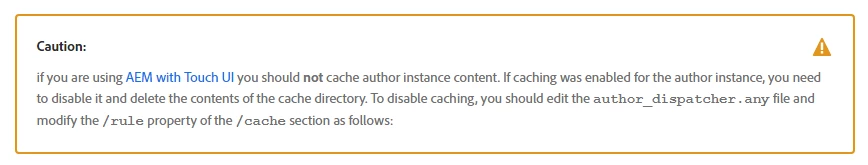 if you are using AEM with Touch UI you should not cache author instance content.