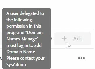 A user must have the Business Owner or Deployment Manager role to add a custom domain name in Cloud Manager, and you must be using the Fastly CDN.