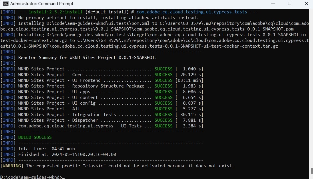 [WARNING] The requested profile "classic" could not be activated because it does not exist.