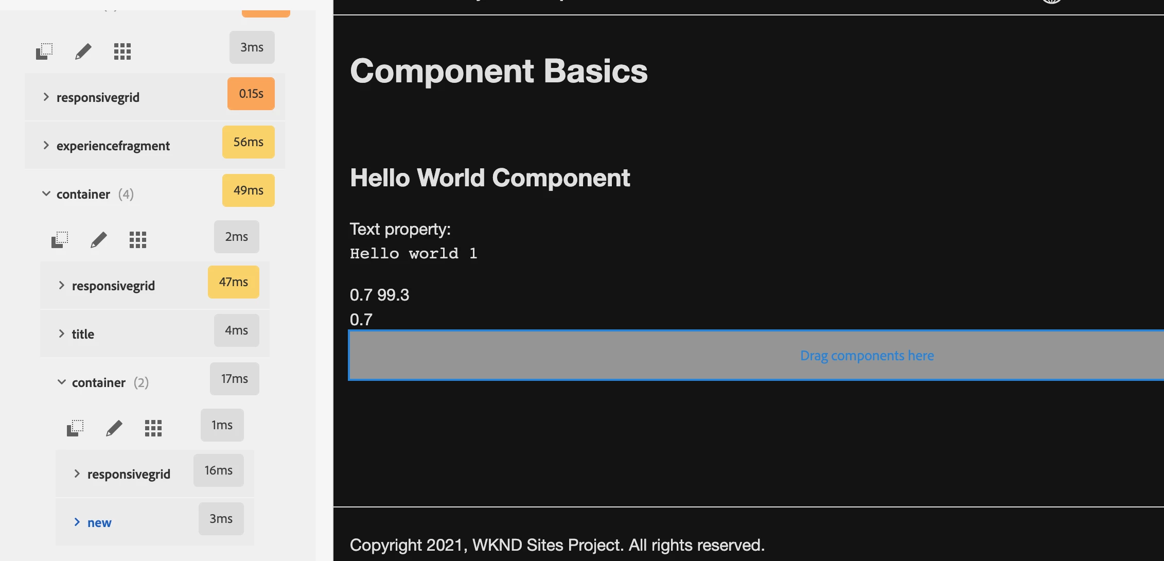 Trying out AEM 6.5. I'm following the WKND tutorial and after adding the HelloWorld component, It doesn't appear on the side panel in Developer Mode.