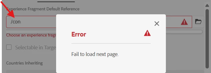 If i give rootPath as /content/experience-fragments/myproject then this error doesnt show up. But i want to have rootPath as /content/experience-fragments only. Any solution to this?