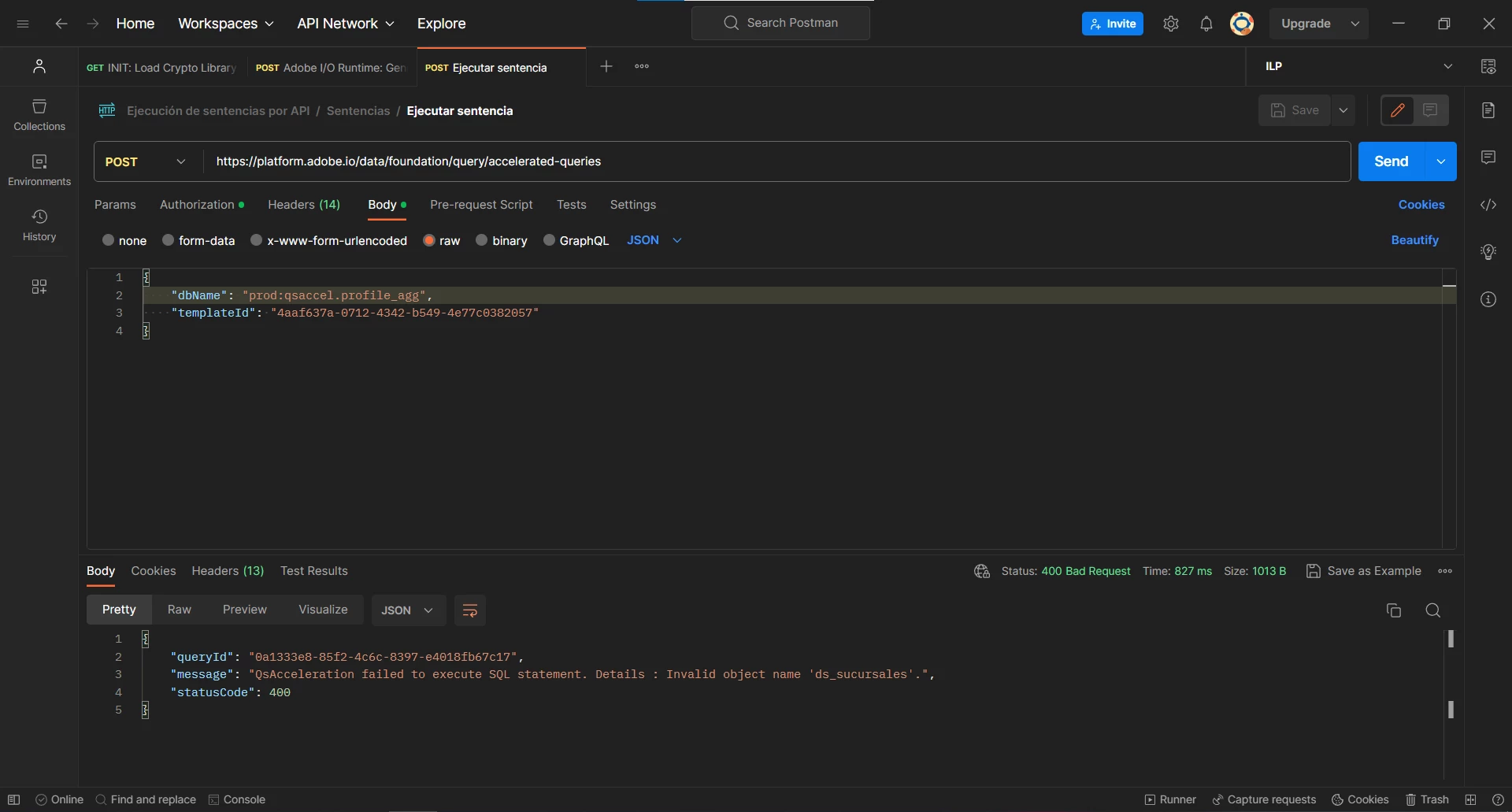'400: Bad Request' when I try to use Accelerated Queries API endpoint on Postman
