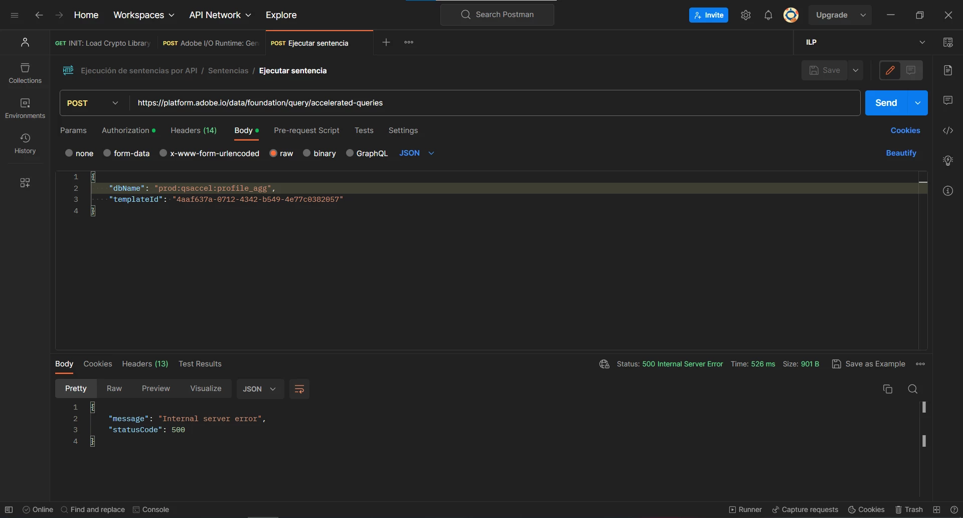 I want to execute the statement using the Accelerated Queries API endpoint on Postman, so I follow the Accelerated Queries API Endpoint Doc.