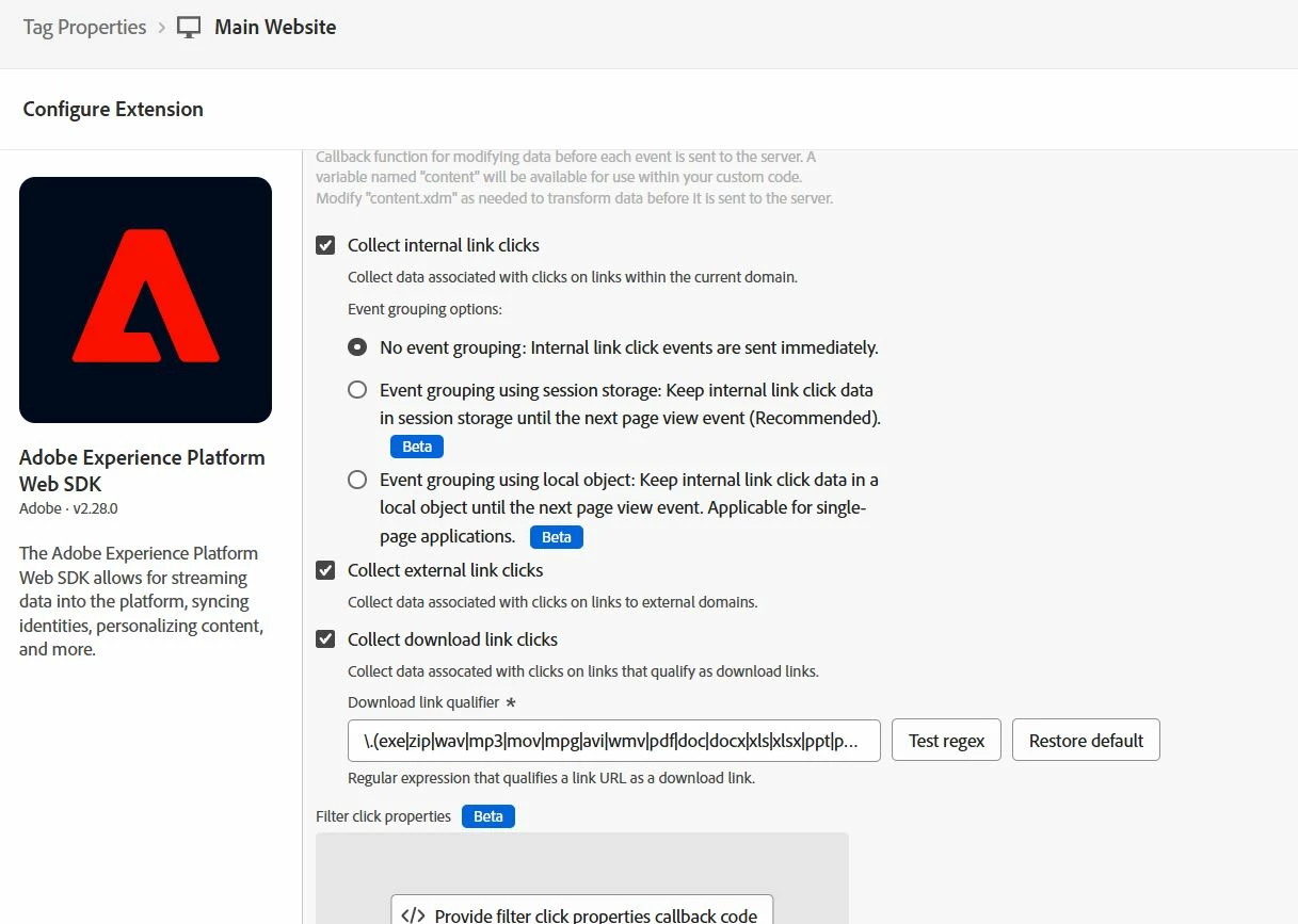 * Use this custom code block to adjust or filter click data. You can use the following variables: