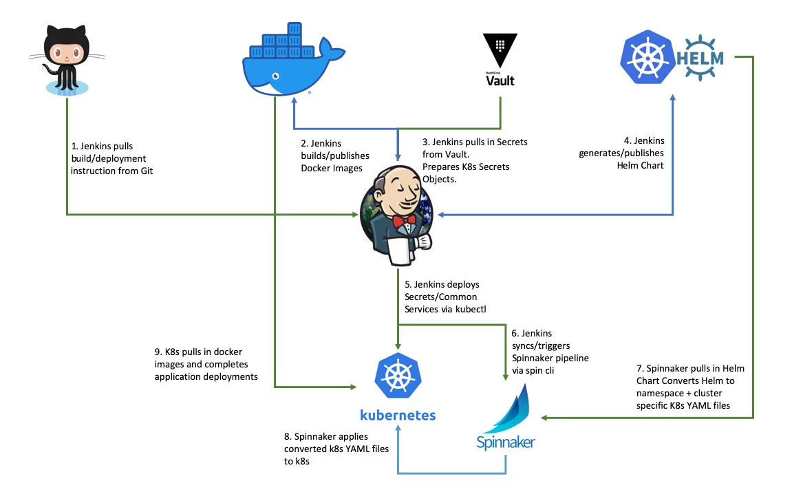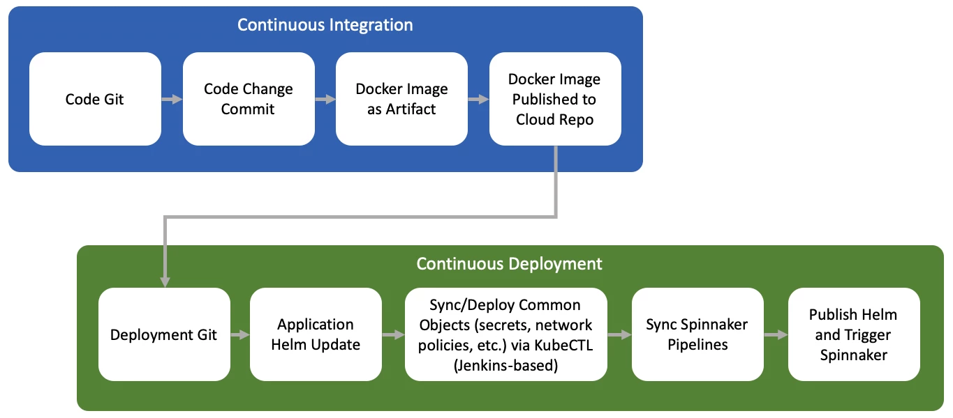 2. Kubernetes CLI (kubectl) can be challenging to use for complex deployment orchestration, such as red/black deployment. So, we went along with an industry-proven CD orchestrator: Spinnaker.