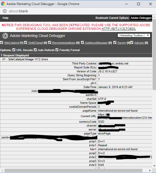 I am doing some verification work for a client site using the Adobe Experience Cloud Debugger tool.