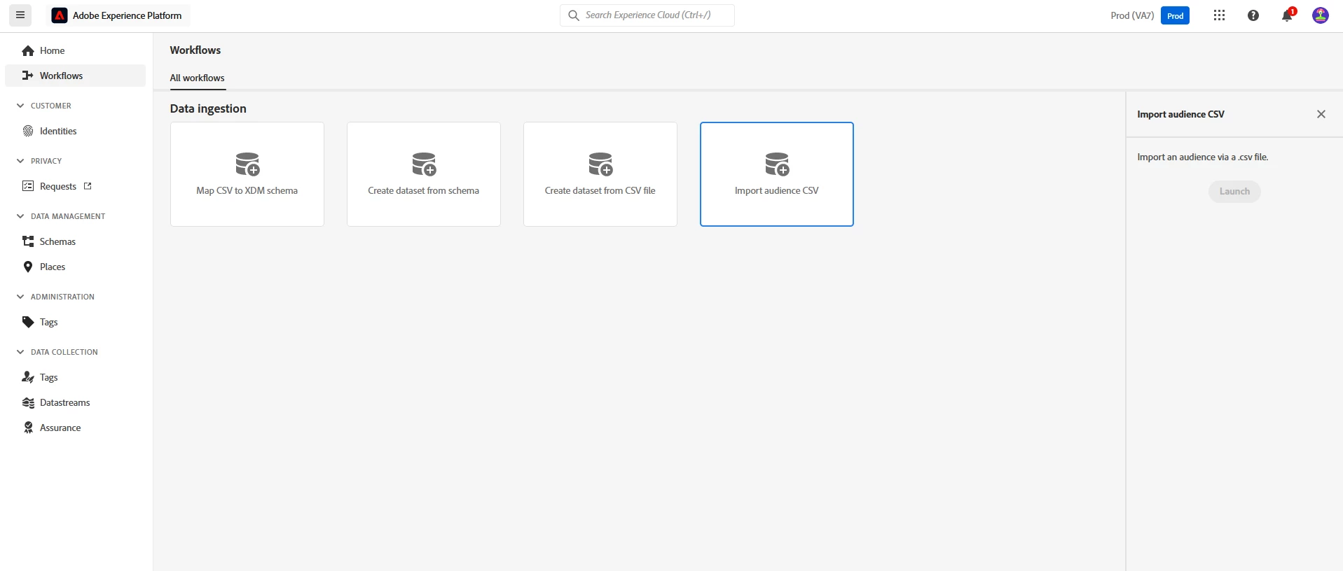 I am an admin for our Adobe Experience Platform product (in every product profile), however I am unable to import a CSV audience via workflows. The alert says that I need permissions to view-segments, manage-segments, view-sources, manage-sources, view-datasets, and manage-datasets. Based on other information in the Experience league those permissions are created and assigned within the AEP under and admin section called permissions. As you can see from my screen shot that option is not available. Am I doing something incorrectly or should I be looking in a different area?