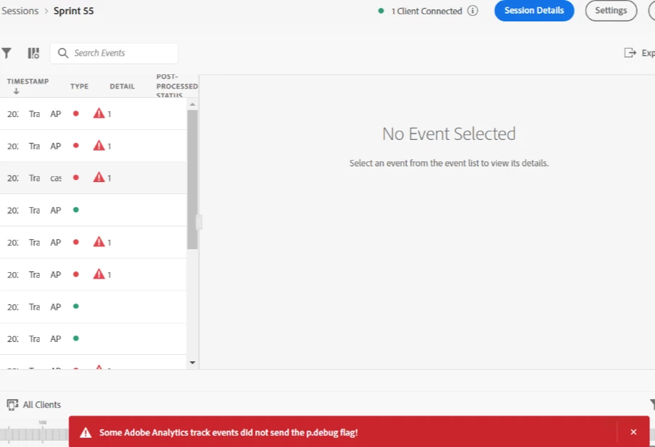 I´ve dev team that is getting the "some Adobe analytics track events did not send the p.debug flag". I´ve seen another post about this and the solution was to switch the griffon version for the Adobe one.