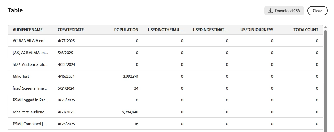 I’m sure I could keep going in my analysis and I might at some point, but the combination of both lists allowed us to easily identify a high likelihood of 201 audiences to be deleted that had little to no business value. I could come up with count thresholds or journeys that are no longer active. A number of ways to keep looking at this. At the very least, they gave us a list to start with our analysis.