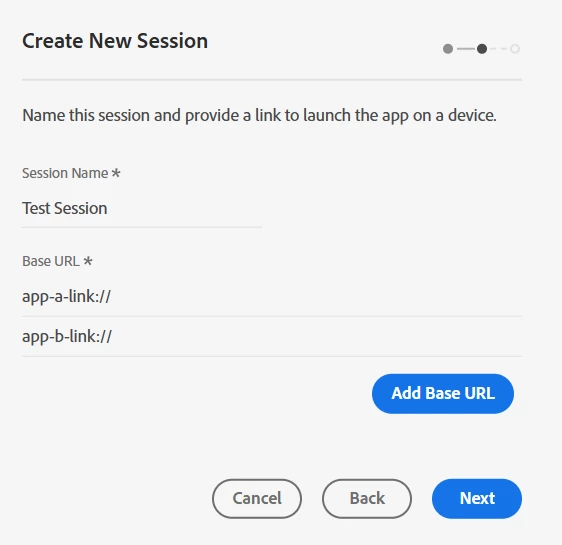 I would like to see a feature that would allow us to add multiple base URLs to a single sessions... similar to how we can connect multiple devices to a single session, I would also like to have multiple apps (and by extension, multiple devices running multiple apps) coming into one place for testing.