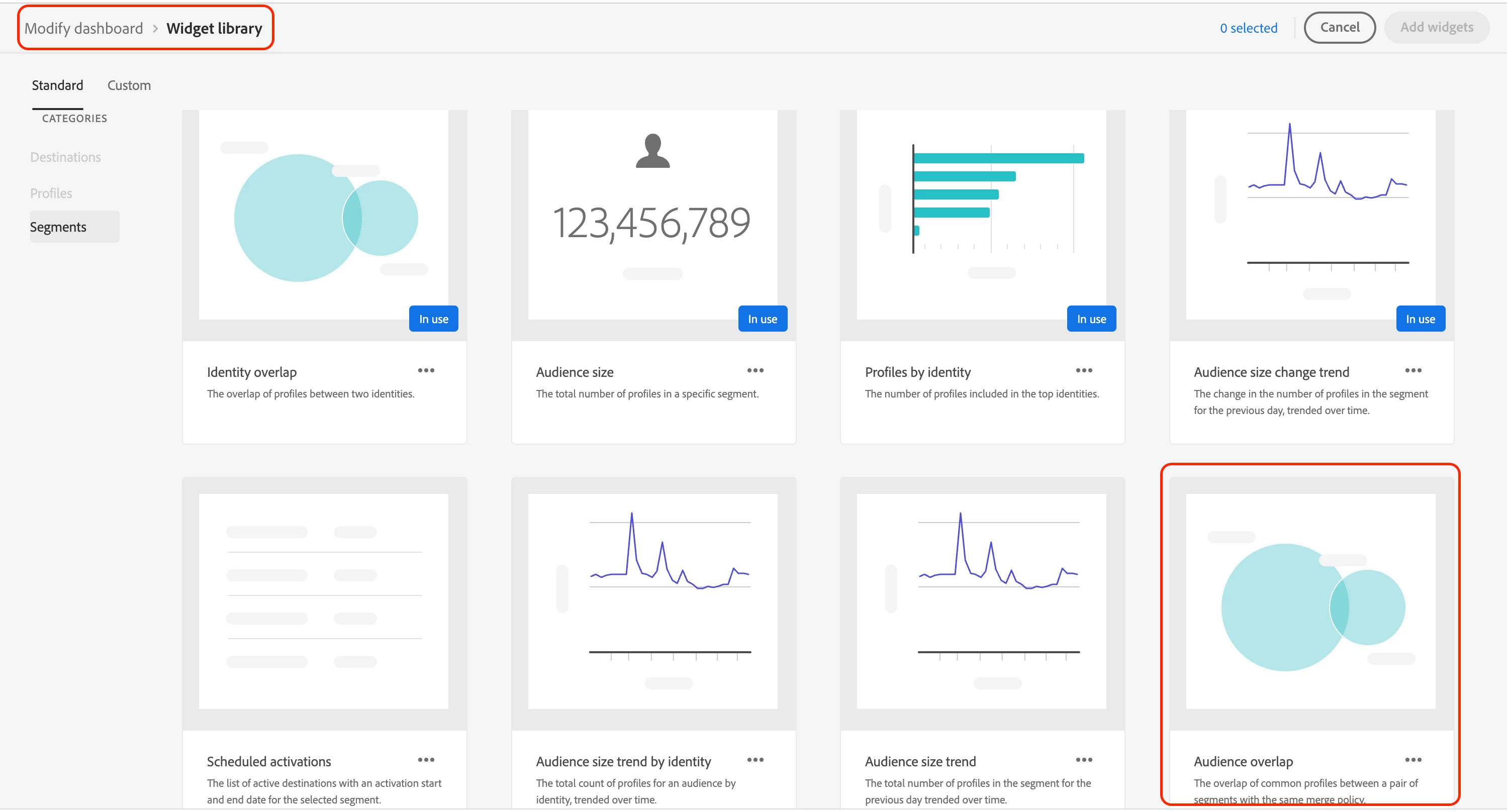 2. Add Widget -> add Audience overlap