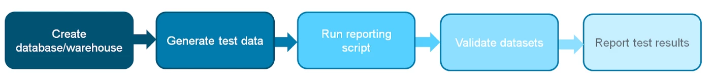 A typical test workflow begins with the creation of the database and warehouse for a specific test instance, as shown in the figure below.