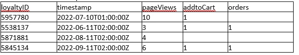 Loyalty Data: Have ingested Loyalty data similarly to CRM dataset using a JSON file. Below is the preview of the loyalty dataset.