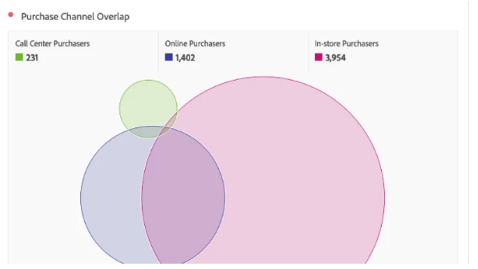 · Unified Purchasers: As you can see, the below screenshot gives the overlap of the purchasers between Online, In-store, and Call Centers. It is a powerful insight to be able to know the number of customers who purchase both online, offline, or even through a call center.