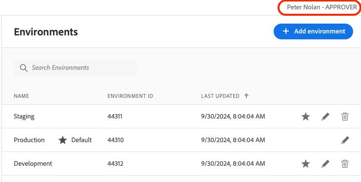 - I have an Approver role in the Target workspace whose environments I'm trying to connect to