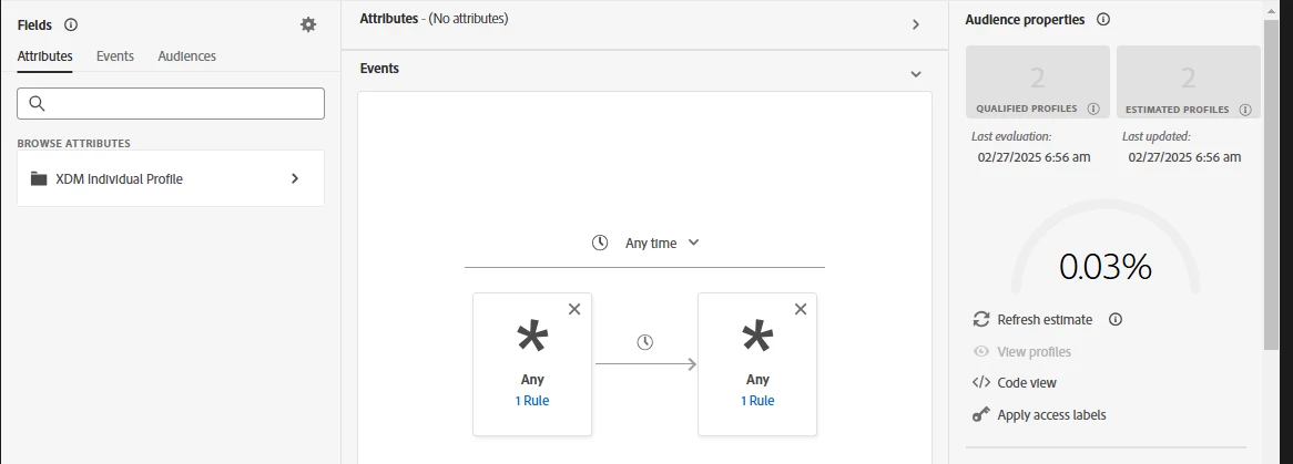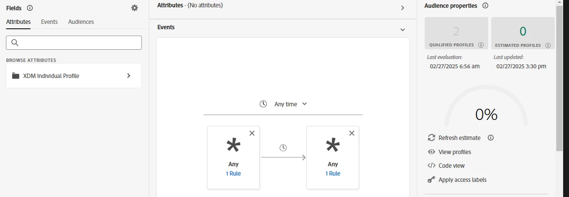 I have successfully ingested Event Data into AEP with records of two profiles. Then I create an audience to get that two profile into that Audience. However, when the batch was evaluated, it has shown that there are 2 Qualified Profiles and 2 Estimated Profiles. However, the "View Profile" button was grey and cannot be click. Then I proceed to "Refresh Estimate" and now it shows 2 Qualified Profiles and 0 Estimated Profiles and the "View Profile" button is now showing that there are NO profiles for viewing. Therefore, I am unable to verify if the conditions I choose would work for the expected profile to show. Anyone knows how I could see who this two profile will be? Or how can I get the two expected profile to show in "View Profile".
