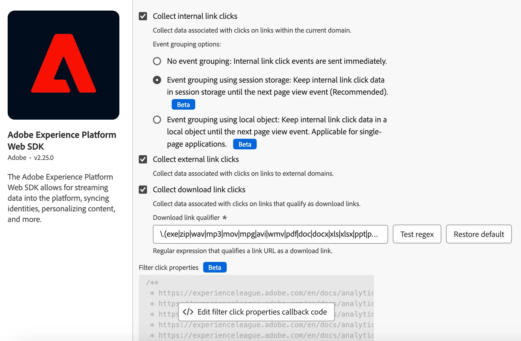 Link to the adobe documentation : clickCollection | Adobe Data Collection