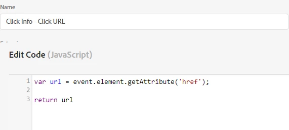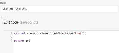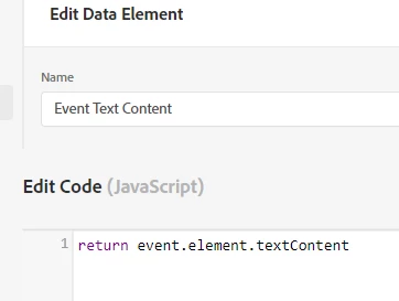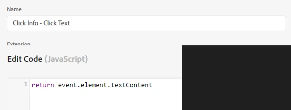 So now, in the Rule's action, you can set your click text with %this.@cleanText% .  What this does is to get the text content of the clicked DOM element. The special operator "@cleanText" returns the trimmed version of the text content, i.e. no leading nor trailing whitespace. (In JavaScript, that's similar to the String trim() function.)