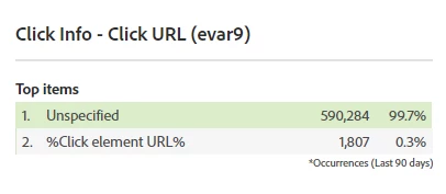 so we have two eVars on report suite, the 8 and 9 to track click text and click URL..