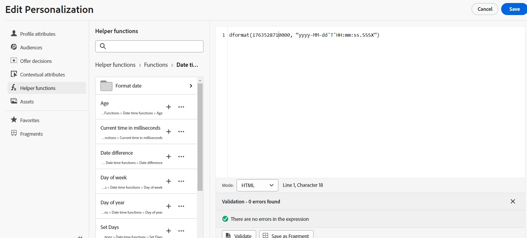 Convert unix to date in personalization in AJO