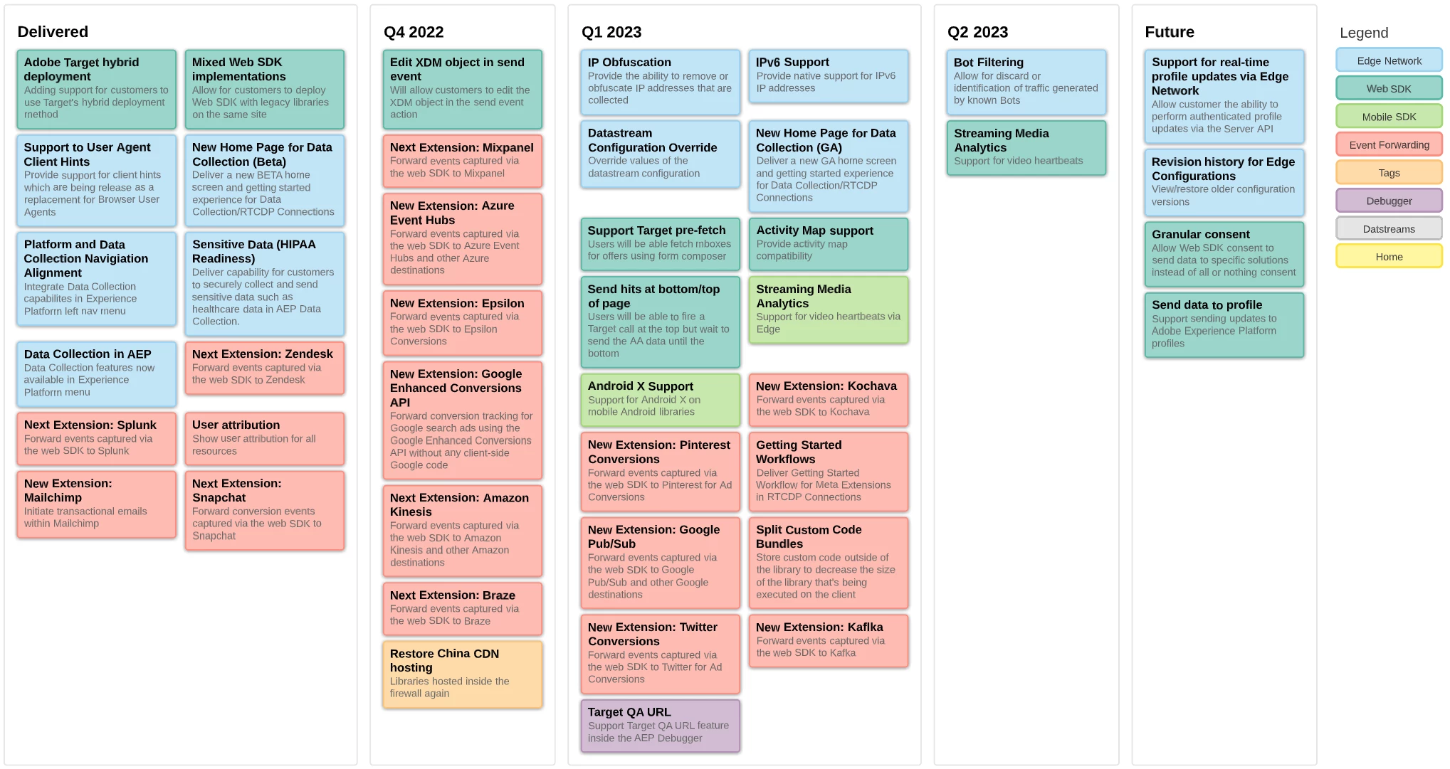 This is a roadmap. It is not a promise. It is a snapshot of what we think we can deliver based on our priorities at this current moment . You should expect things to move around. New items will be added. Individual items will move closer and farther when development teams refine scope, update priorities, or otherwise learn that things did not take the exact amount of time that we estimated.