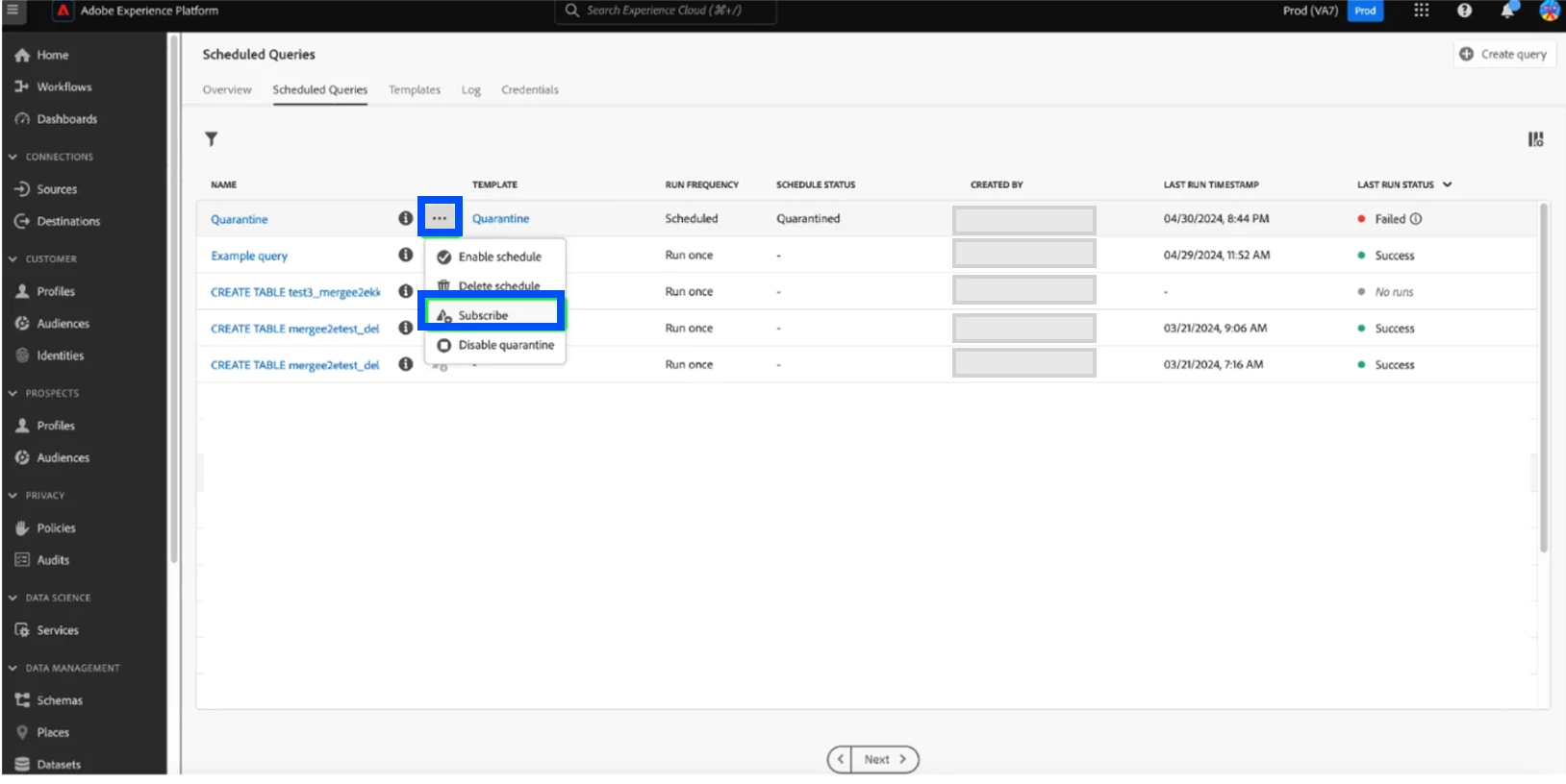 Query Quarantine is now available to all Data Distiller users. By implementing this feature, organizations can safeguard system resources, prevent potential disruptions of derived datasets, and ensure more efficient data processing across Adobe Experience Platform applications.