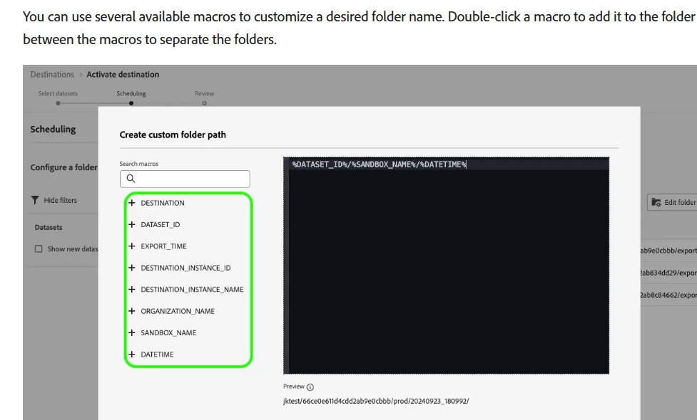 Can I get some guidance on the custom path creation in the target connection for data export to Azure Lake Gen2. Can the container and subdirectories be added to the create custom folder path stage?