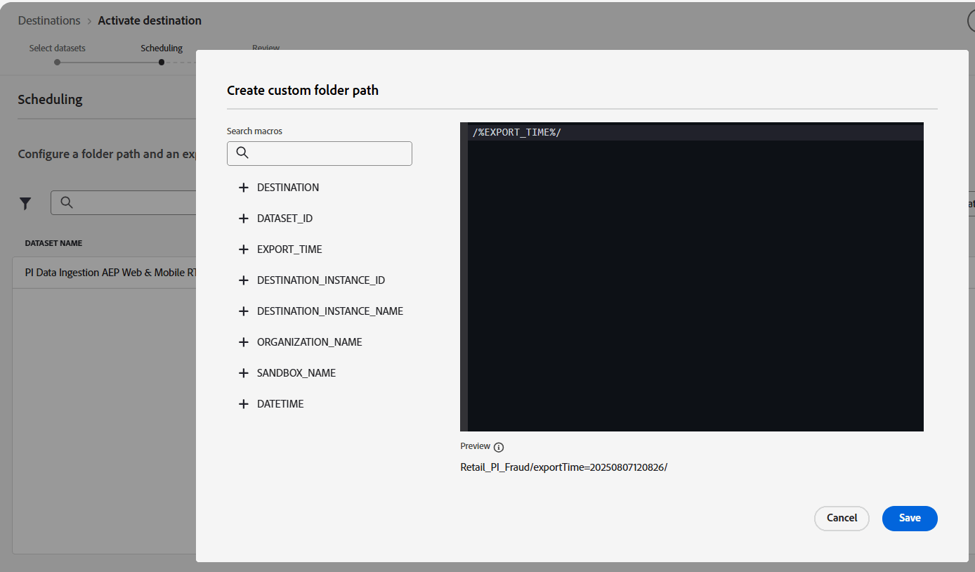 Good morning!!! We have a usecase to create custom folder path while exporting from AEP to S3 bucket.