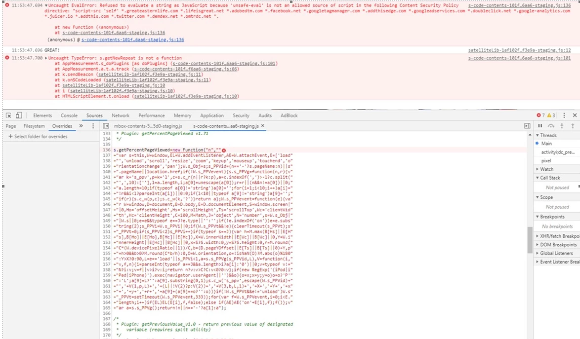 DTM Adobe Analytics plugin scripts blocked by CSP