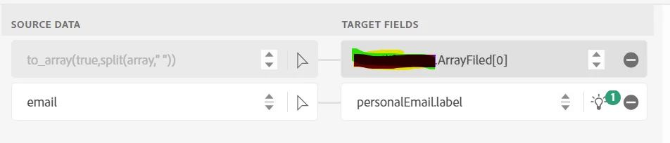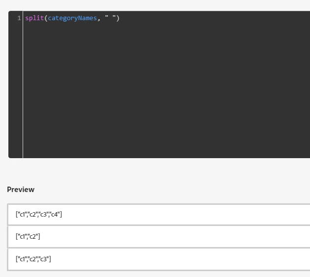 I am trying to ingest a delimiter(space) separated string from a CSV file to an array field in AEP by using "split" data prep function. Below are input string and data prep function I am using.
