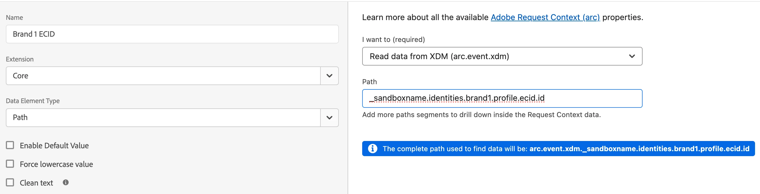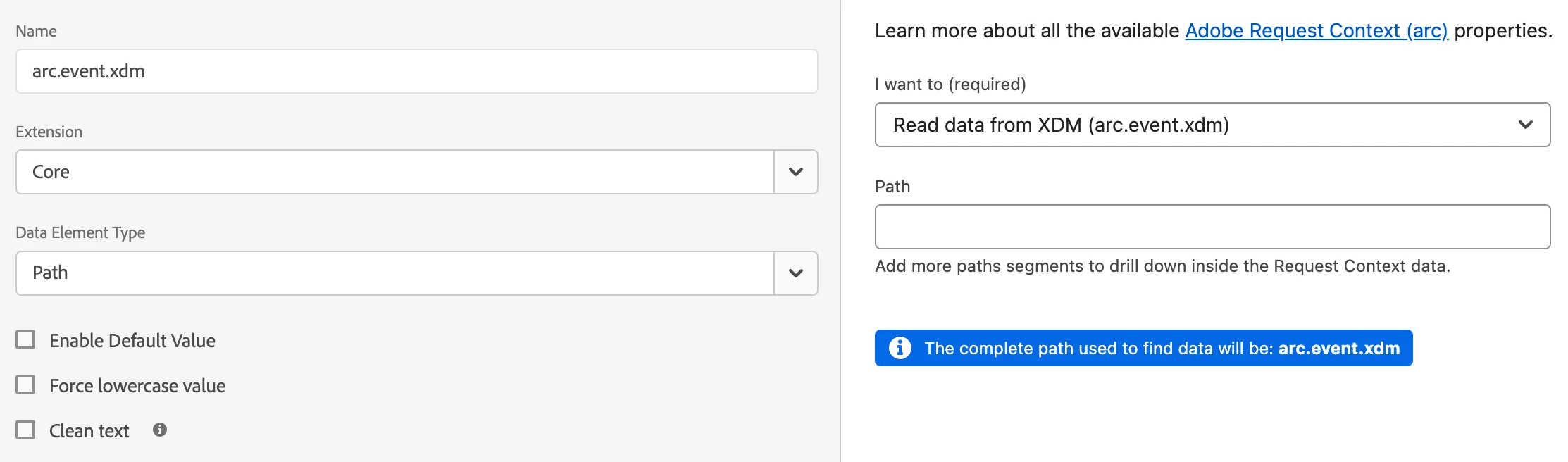 var xdmObject = getDataElementValue('arc.event.xdm');
