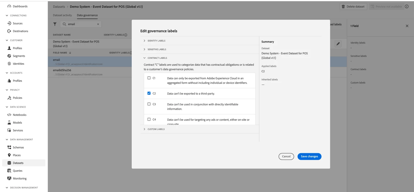You may want to store specific data within AEP but not have that sensitive data be used in marketing efforts. For example, if geographic information is not something you want to use to target ads or other information, you can easily restrict the usage of that data.