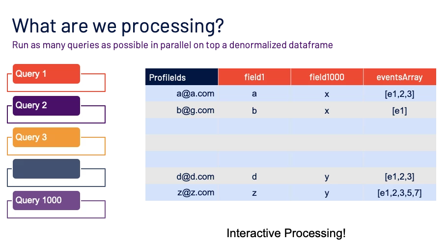 In the case of Interactive Query Processing, we can visualize the problem as executing the same function runQuery (queries=[q1,q2..]) on top of the same data frame for different query inputs.