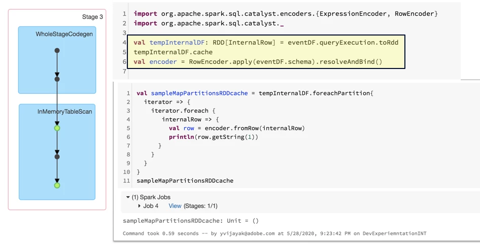 This step returns an RDD[InternalRow] hence we need to apply the row transformation to each row, which is quite cheap since it’s a sparse row but skips the planning stage which is expensive due to the size of the metadata(> 1000 nested columns).