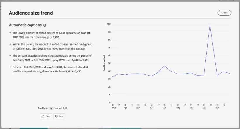 I need to check home many profiles are getting qualified for my audience and at what time