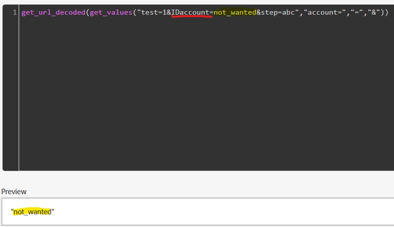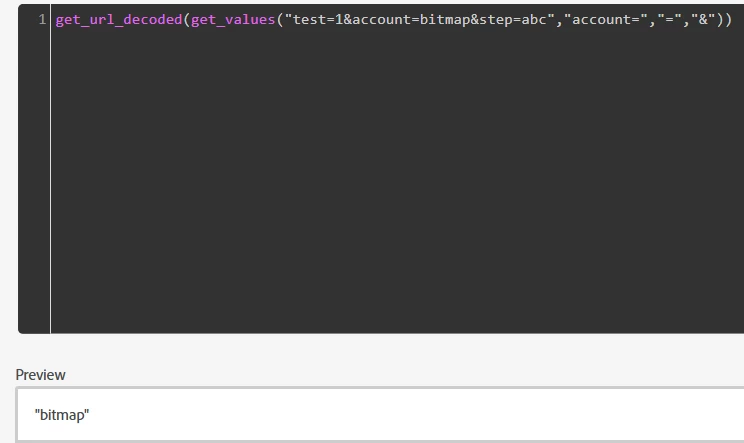 Example: from "test=1&account=bitmap&step=abc", I want to map as output the value of account, so 'bitmap' in this case.