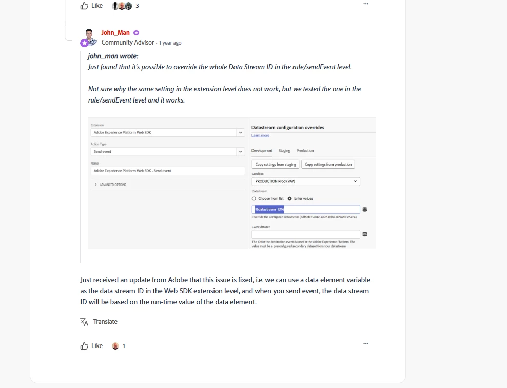 I recently developed a data element to dynamically populate the datastreamID based on the page hostname - however the edgeConfigID is still resolving to %data element%.