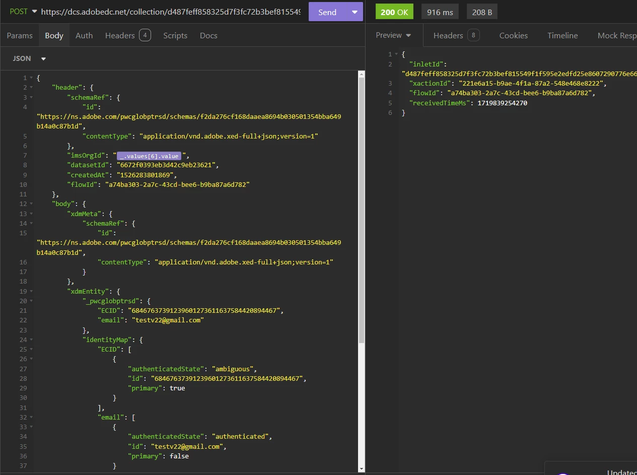I am uploading data to http streaming api. Payload look like this: