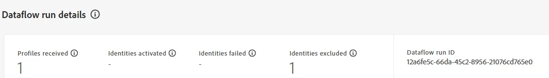 Destination data flow runs and complete successfully but i get “Identities excluded” while profiles are received but none activated.