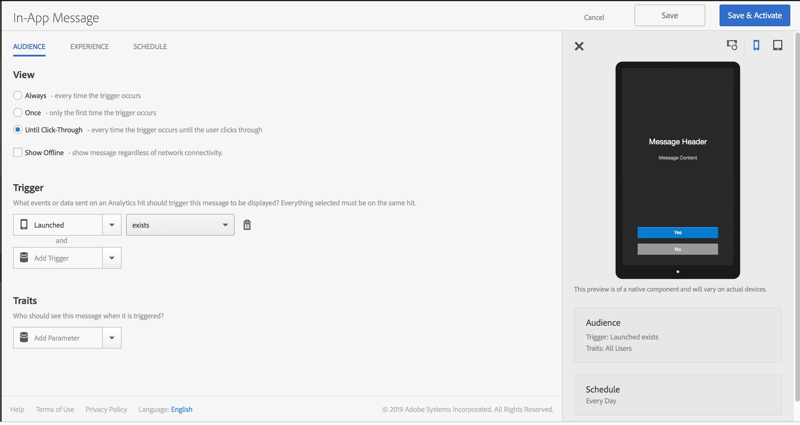 - the current lifecycle session is expired. The default lifecycle session time is 300 seconds. If the app had been closed or in the background for 300 seconds or more then relaunched, a "Launched" event will be triggered thus triggering the in-app banner message.