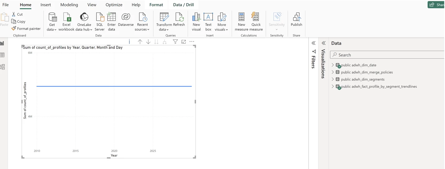 For this blog, I am going to focus on building an audience trendline chart and hence I will be accessing “adwh_fact_profile_by_segment_trendlines” table along with the lookups as shown below: