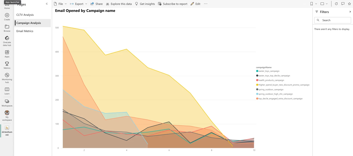 Once the data is loaded you can build dashboards and report as you would in Power BI. Refer to Power BI documentation on guidance for how to author charts.