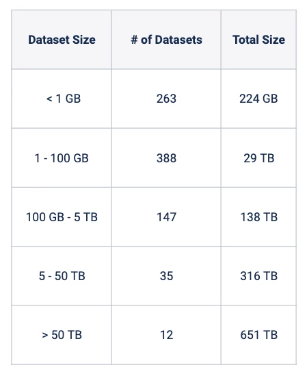 Here’s a snapshot of differently sized datasets across all the clients we’ve migrated.