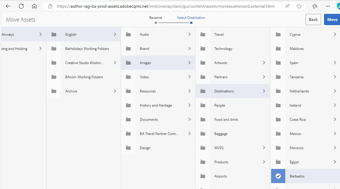 When moving an image inAssets, when you come to choose the destinations folder