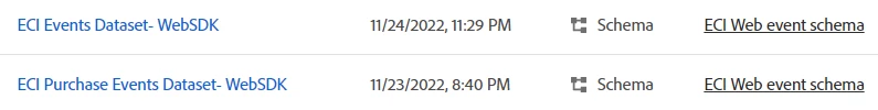 - 2 different datasets referencing the same AEP WebSDK schema. This allows the fragments across datasets to be brought together using the Real-time Customer Profile.