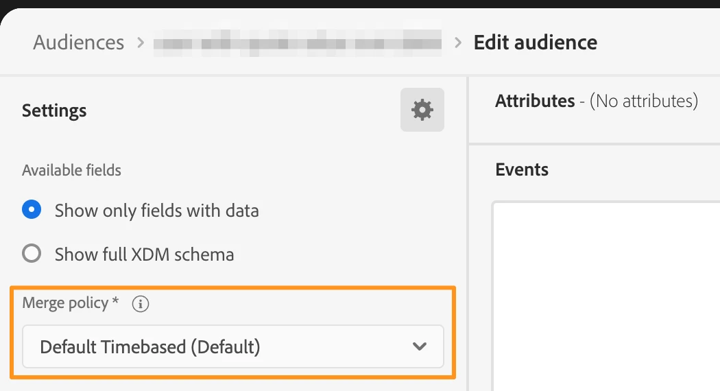 The only relevant merge policies when defining audiences are the ones for "_xdm.context.profile". Of those, only one can be marked as the default.