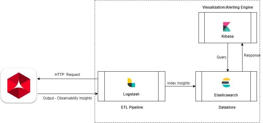 Observability Insights from Adobe Experience Platform shall be imported in the Elasticsearch platform through Logstash event processing pipeline. Logstash event processing pipeline shall import, mutate/transform, and index the data in the Elasticsearch index.