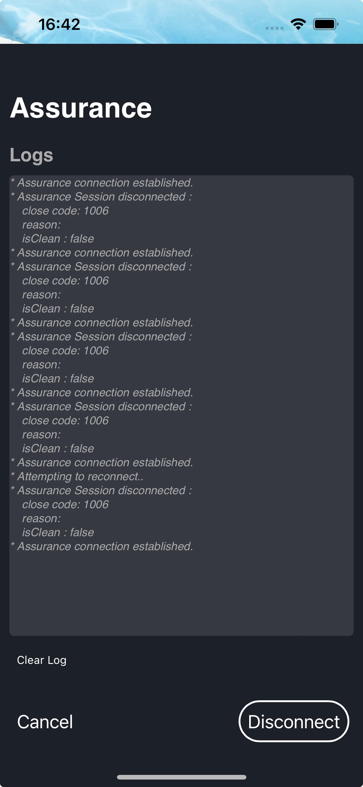 I am encountering a persistent issue with Adobe Assurance on my iPhone 13, which is running iOS 17.5.1. The application frequently disconnects and reconnects automatically, displaying the following error message: